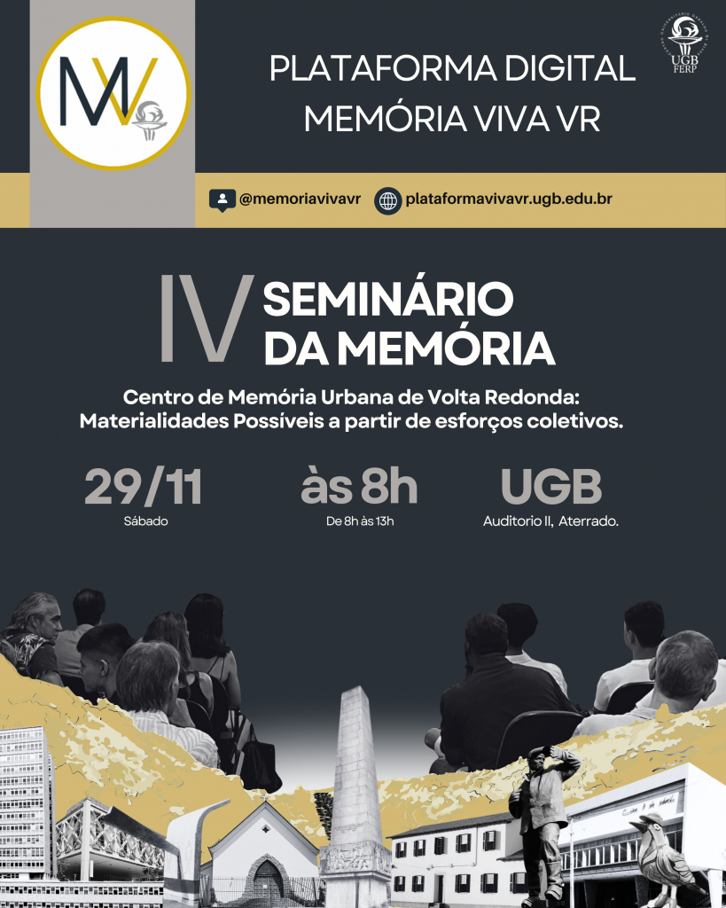 No último dia 29 de novembro, o curso de Arquitetura e Urbanismo, por meio de sua PLATAFORMA VIVA VR (@memoriavivavr), projeto científico-acadêmico financiado pela Pró-Reitoria de Pós-Graduação, Pesquisa e Extensão (PROPPEX), realizou no campus Volta Redonda o IV Seminário da Memória. Nesta edição, o foco esteve voltado ao campo institucional da região, com o objetivo de reunir proposições e estabelecer parcerias para a montagem, conceitual e efetiva, do que se intitula Centro de Memória Urbana de Volta Redonda, estrutura debatida ao longo dos últimos meses no âmbito da pesquisa em desenvolvimento.