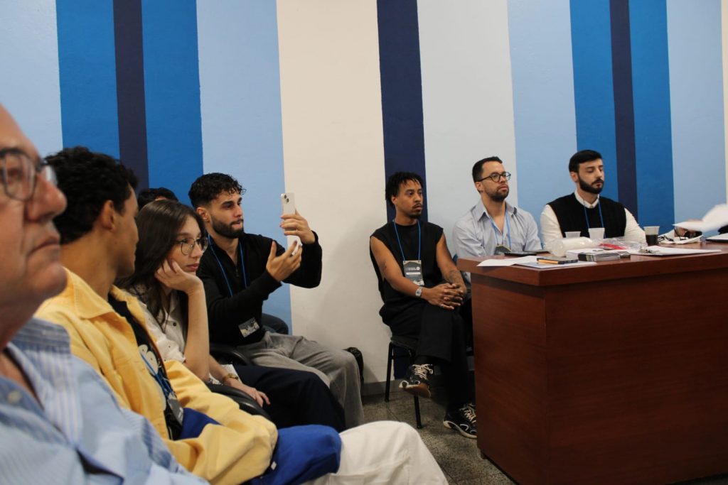 Após a apresentação conceitual da proposta para 2025, foram convocados os alunos pesquisadores para discorrerem sobre os princípios de implantação de um equipamento público e colaborativo, como o sugerido. Em seguida, formou-se a Mesa 01, mediada pela professora Andréa Auad, que reuniu representantes das instituições estaduais mais relevantes para o tema do seminário: Annibal Magalhães (Instituto Estadual do Patrimônio – INEPAC), Ana Paula Poll (Centro de Memória do Sul Fluminense – CEMESF/UFF), Wiliam Gomez (Conselho de Arquitetura e Urbanismo – CAU/RJ) e Gianne Carvalho (Fundação Cultural da Companhia Siderúrgica Nacional – FCSN).