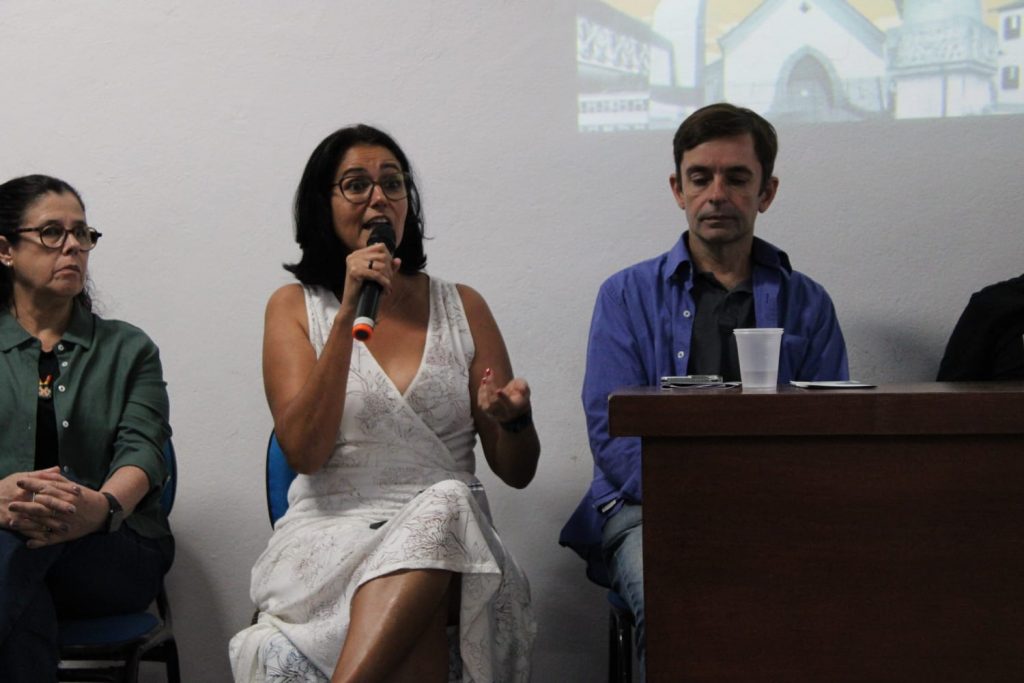 Para o campo da preservação, a gente tem que estudar muito, estar muito preparado hoje. Tijolo maciço, pouca energia, qual é a emissão de informação dessa cidade? Em torno de Quarenta por cento a taxa de emissão da construção de um prédio, mas parece criação da memória, que vocês já acompanhavam alguma coisa da cidade, né? O escritório técnico estudou, de forma muito interessante, as antigas cidades fluminenses que existem, mais as da Baia de Guanabara, tais como Porto Iguaçu, antiga Nova Iguaçu. Desde 1977–89, recebemos projetos executivos que recuperam, integram cadeiras, equipamentos, a Estação de Barra Mansa, a Casa Macedo Miranda e a ponte de Resende, a Maria fumaça do Rio Preto. É preciso mobilizar a sociedade, mesmo fazendo a partir da mídias digitais.”